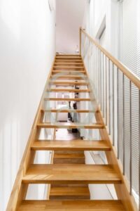 Das Obergeschoss umfasst drei helle Zimmer und ein Tageslichtbad mit Badewanne. Einer der Räume ist aktuell offen gestaltet, lässt sich jedoch mit geringem Aufwand als separates Zimmer abtrennen. Zusätzlich verfügt dieser Bereich über eine vorbereitete Küchennische – ideal für individuelle Nutzungskonzepte wie Mehrgenerationenwohnen oder Arbeiten und Wohnen unter einem Dach.