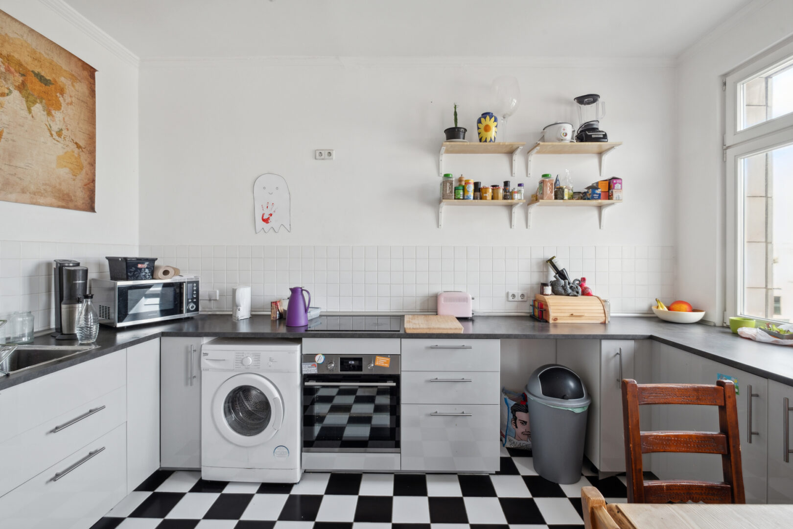 Die moderne Einbauküche bietet ausreichend Platz und ist durch die Fenster hell und freundlich. Das sanierte Badezimmer ist nicht nur modern, sondern auch mit einer hochwertigen Dusche ausgestattet, was für zusätzlichen Komfort sorgt.
