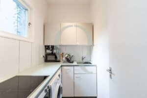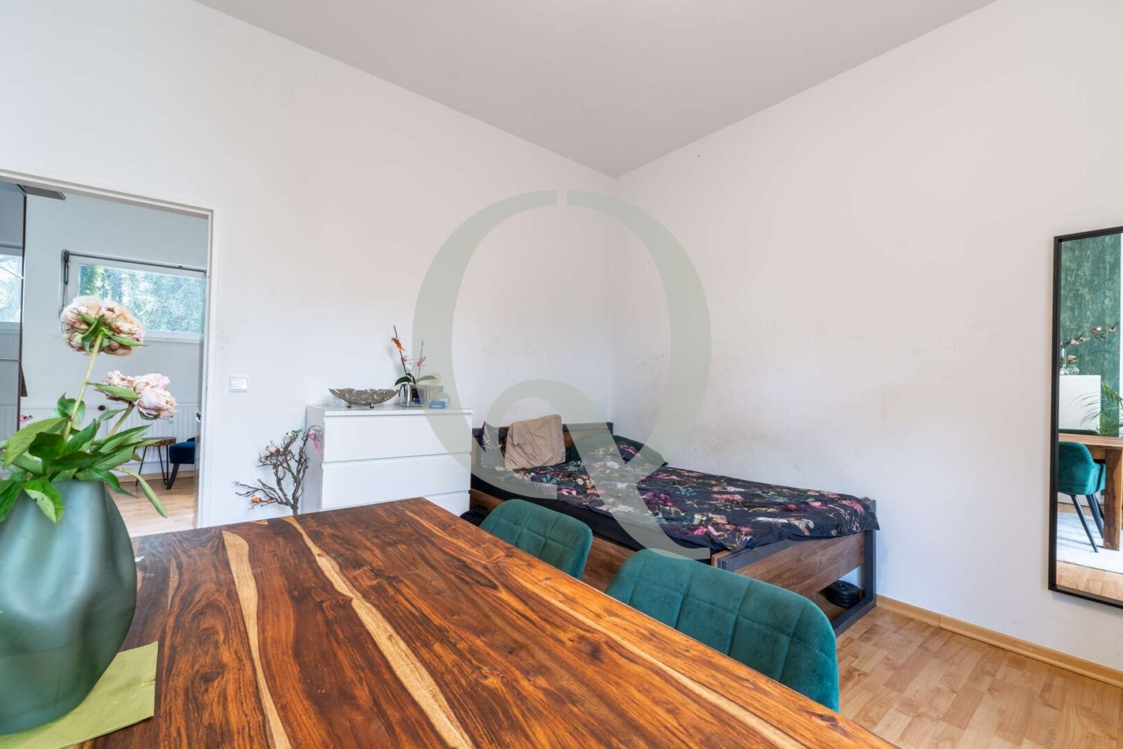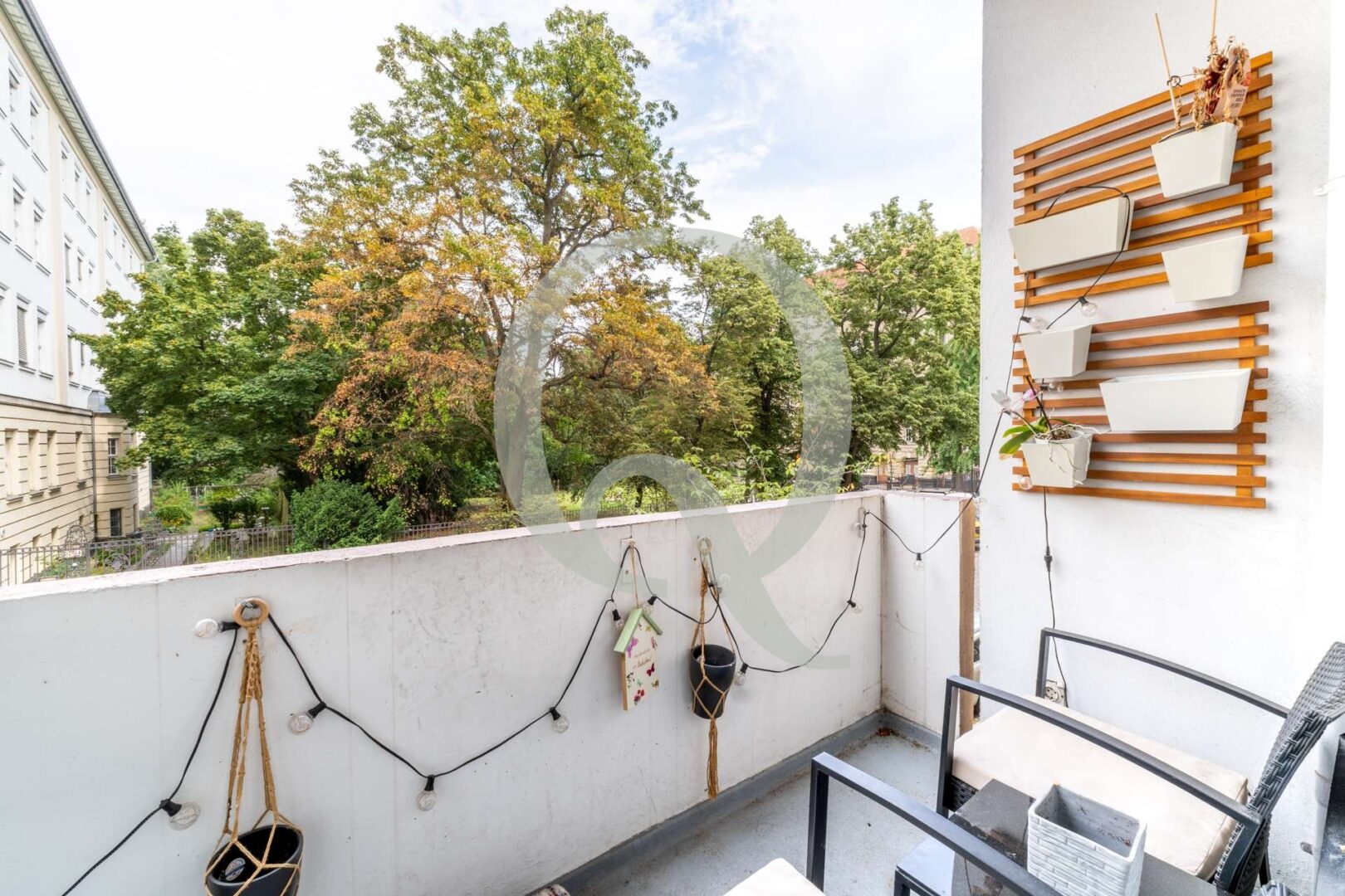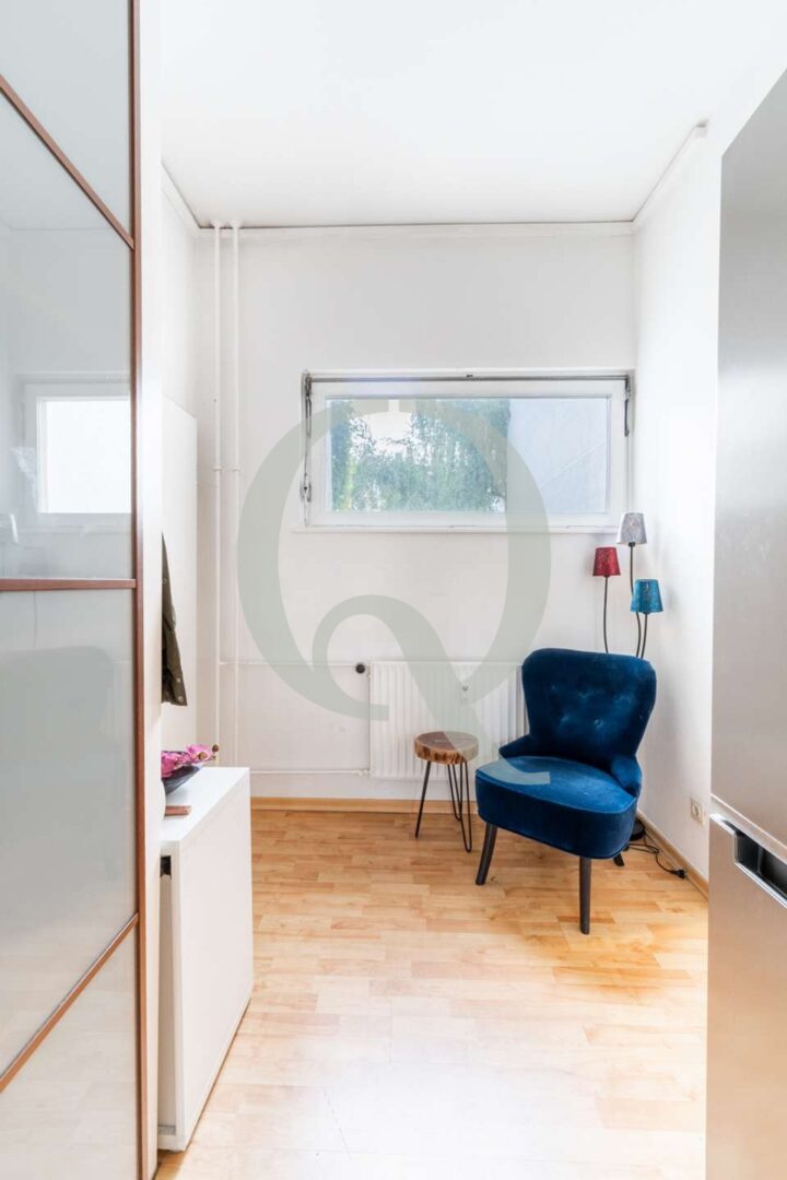 Besonderes Highlight ist der Balkon mit ruhigem, grünem Ausblick – eine kleine Oase mitten in der Stadt. Der Flur bietet Platz für einen großen Schrank und schafft zusätzlichen Stauraum.